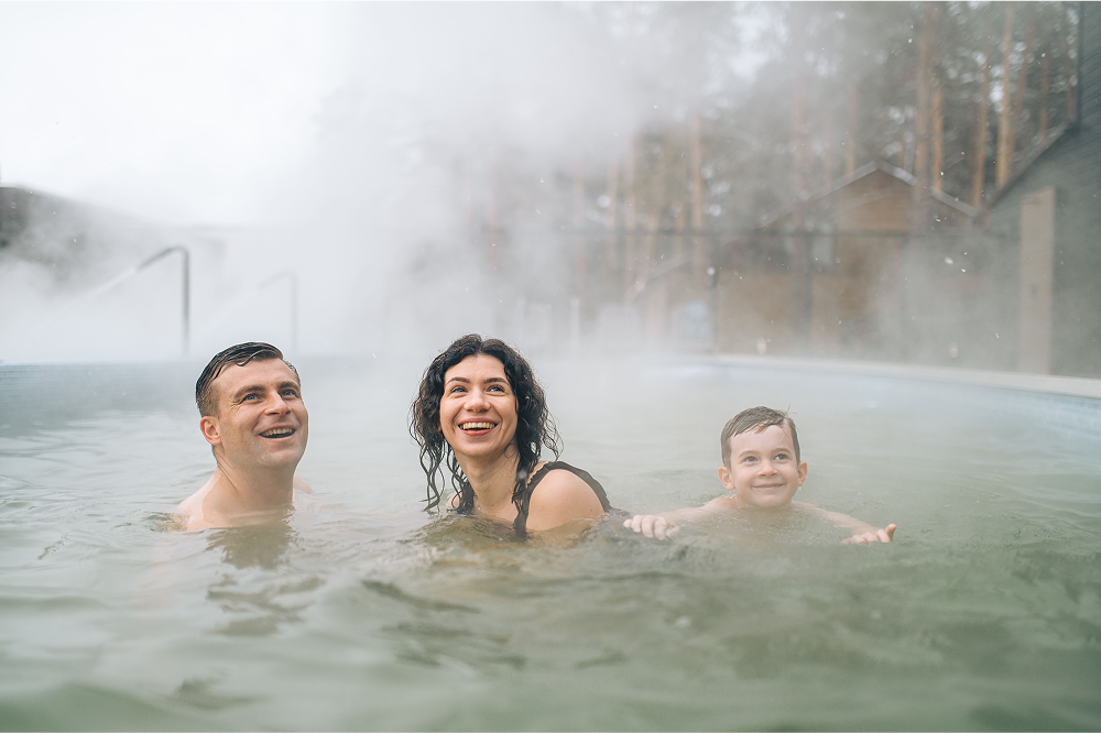 Вас ждут два бассейна с термальной минеральной водой, русские бани, сауны, хаммам, соляная пещера и комната релакса. Остановиться можно в комфортабельных коттеджах или в уютном отеле. На территории есть ресторан, детские площадки, прокат спортивного инвентаря и мини-ферма с животными.
