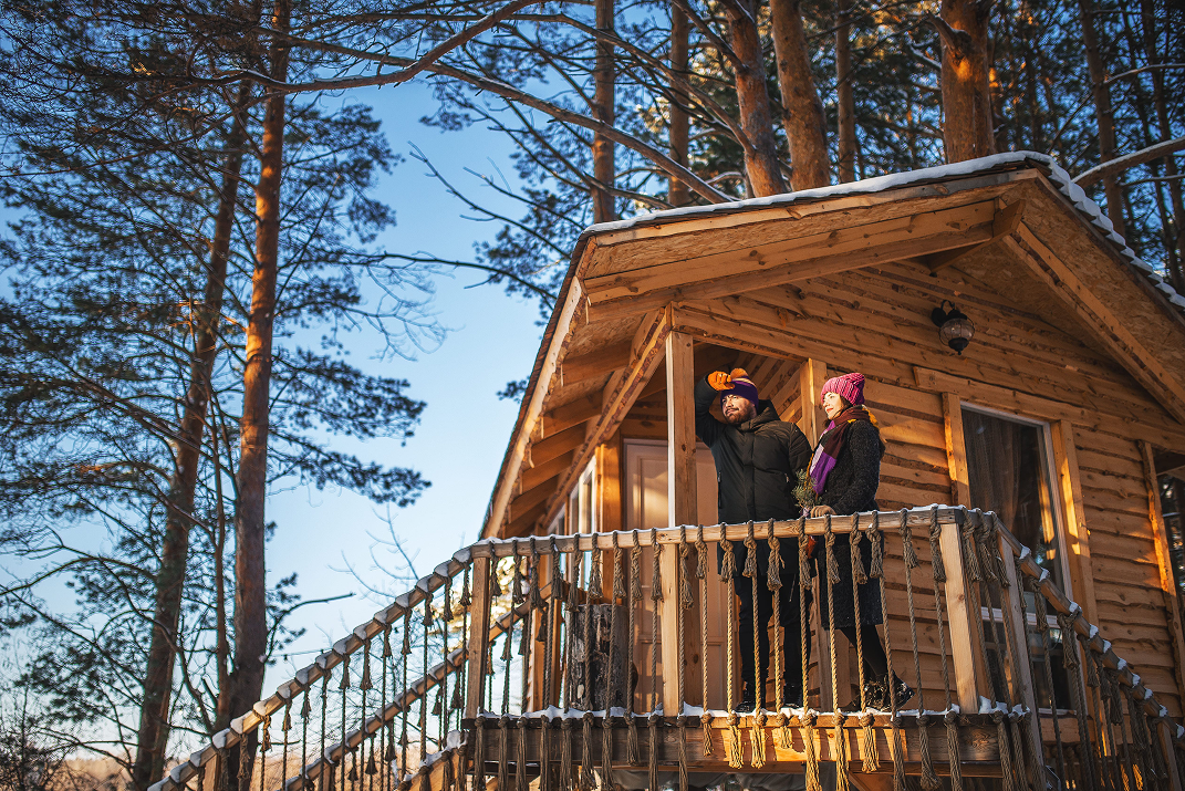 Экологичное пространство с уютной атмосферой и оригинальными домиками: нора хоббита, дом-автобус, «Кащеева хата» и жилище на дереве. Здесь можно покататься на лыжах и горках, попариться в баньке с живописными видами, попробовать авторские блюда в кафе, пройтись по экотропам и посетить мастерскую.